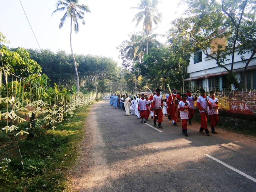 Tutti i fedeli della parrocchia giuseppina di Thresiapuram si radunano